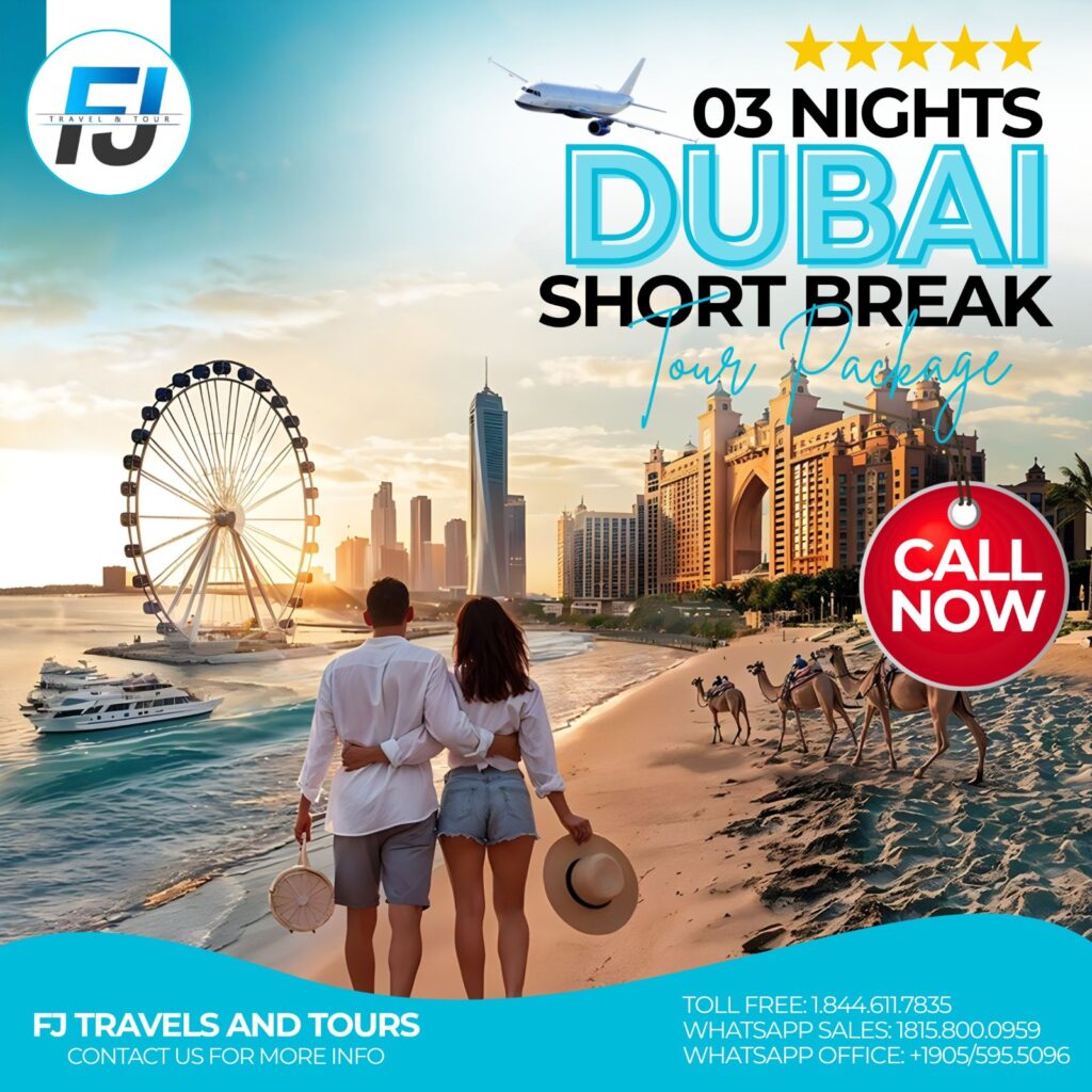 Looking for a Dubai honeymoon package, Turkey family vacation, or a Cairo cultural adventure? FJ Travels will design it for you — including flights, hotels, visas, transportation, and guided tours, all in one affordable deal.
