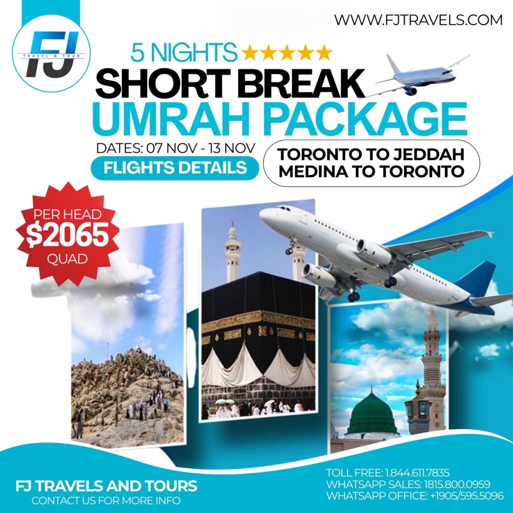 With over 15 years of experience in Saudi tourism, FJ Travels proudly offers trusted travel services and partnerships with leading hotels in Makkah, Madinah, and Jeddah, ensuring comfort, convenience, and memorable experiences for every traveler — whether for Umrah, Hajj, or leisure tours.